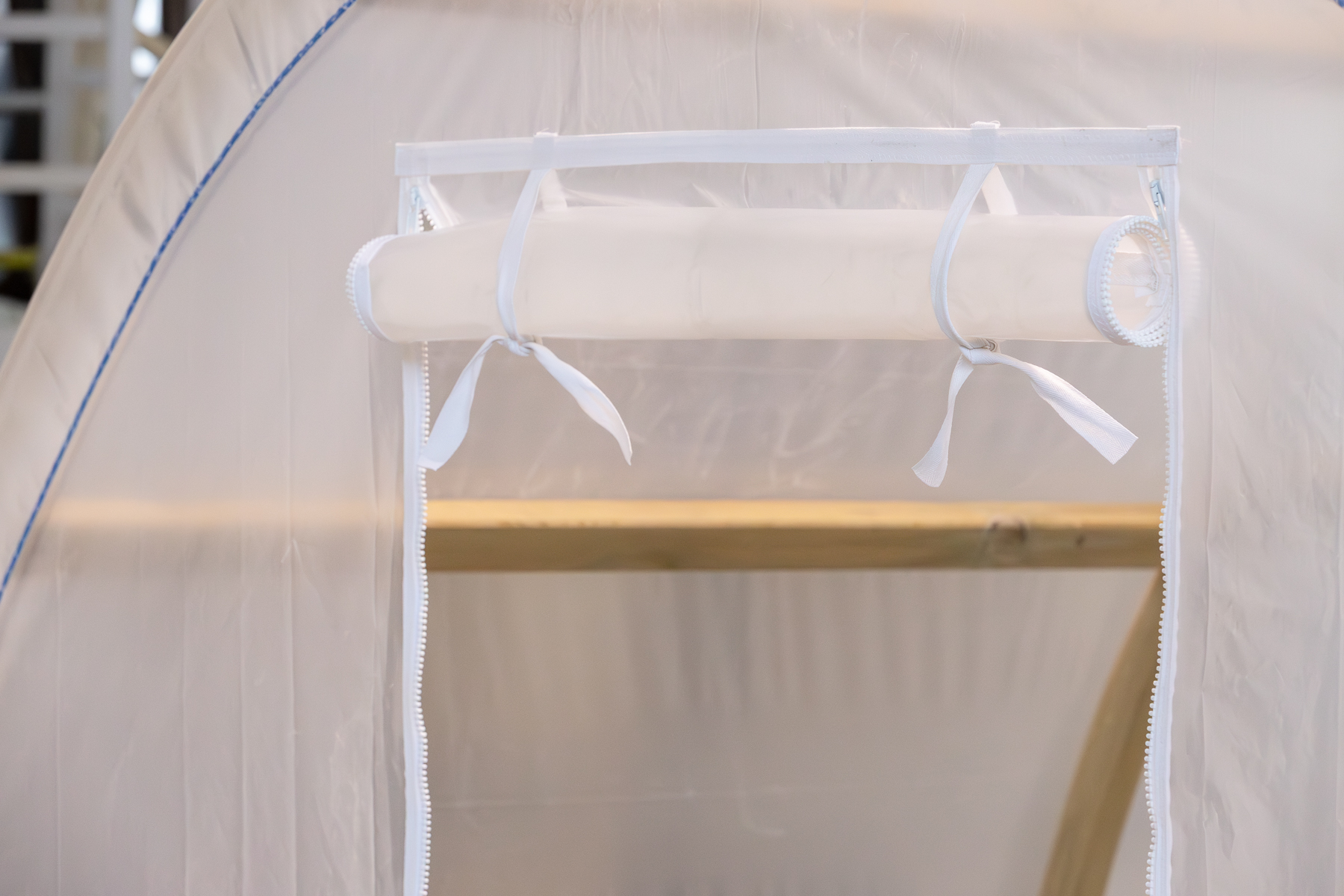 Tunel wyposażono w drzwi z zamkiem błyskawicznym. Otwieranie jest szybkie i wygodne. Zamykane okno umożliwia skuteczną wentylację. Wymiana powietrza chroni rośliny przed przegrzaniem. Ułatwia także kontrolę wilgotności. Codzienna obsługa tunelu jest prosta i intuicyjna.